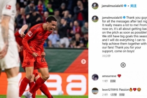 穆西亚拉更新社媒谈到自己的情况,他写道:“感谢大家昨晚以来的留言,这对我来说意义重大!从现在开始,一切都是为了尽快回到球场,我们这赛季仍然有重要目标,我将尽我所能与球迷一起帮助实现这些目标!感谢大家的支持,加油!”